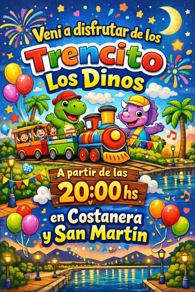 Recorrido por la ciudad en trencito , con personales infantiles. Posee rampa de acceso para personas con discapacidad. Salida de Av Quirós entre San Martin y Bolívar ⚠️Salidas de lunes a lunes Salimos en San Martin y costanera a partir de las 20 hs en adelante hasta las 00 o 02 de la mañana.