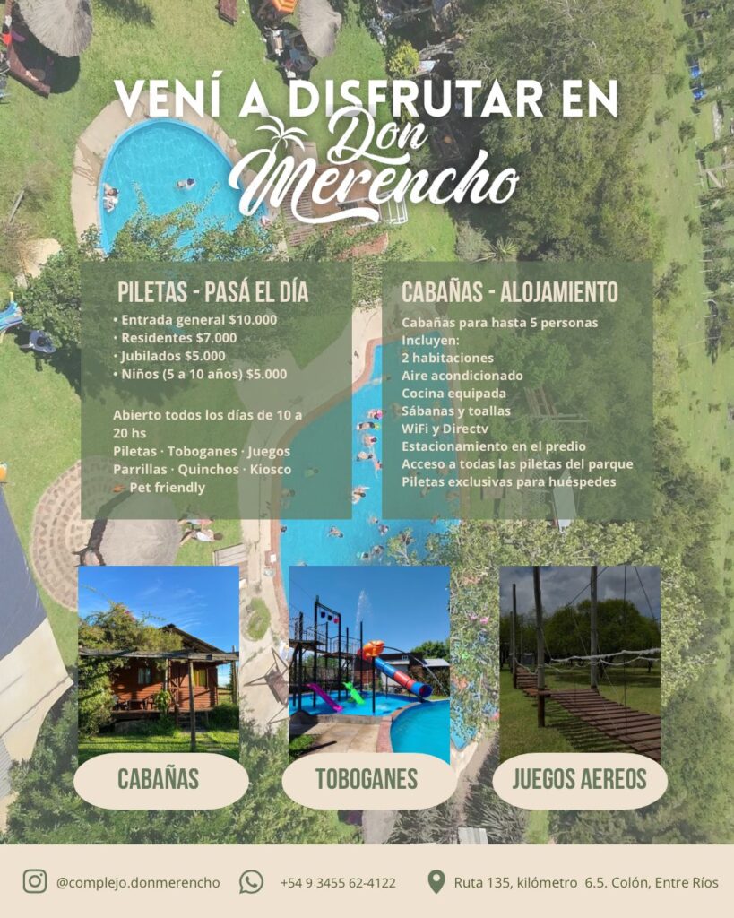 ABIERTO EN VERANO Piscinas con: cascadas, toboganes, trepadores y juegos acuáticos, baldazo y mucho más. Estacionamiento-Vestuarios-Sanitarios-Duchas-Sombrillas-mesas, bancos y sillas- comidas y bebidas Se puede ingresar con sillas playeras, comida, bebida, heladera. NO SE PERMITE: BEBIDAS ALCOHÓLICAS, MÚSICA, NI MASCOTAS