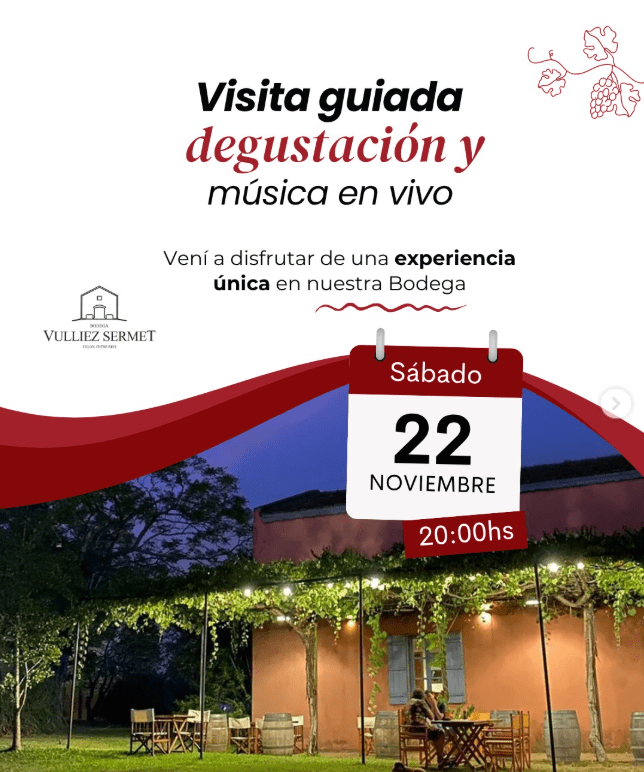 ¡PLANAZO CON MÚSICA EN VIVO! 🎶 Sábado 22 de Noviembre. ¡La bodega se vive de noche y va a ser una fiesta para los sentidos! Te invitamos a una EXPERIENCIA ÚNICA que lo tiene todo: Empezamos a las 20:00 hs con una Visita Guiada nocturna por la bodega. Seguimos con una Degustación de nuestros vinos, […]