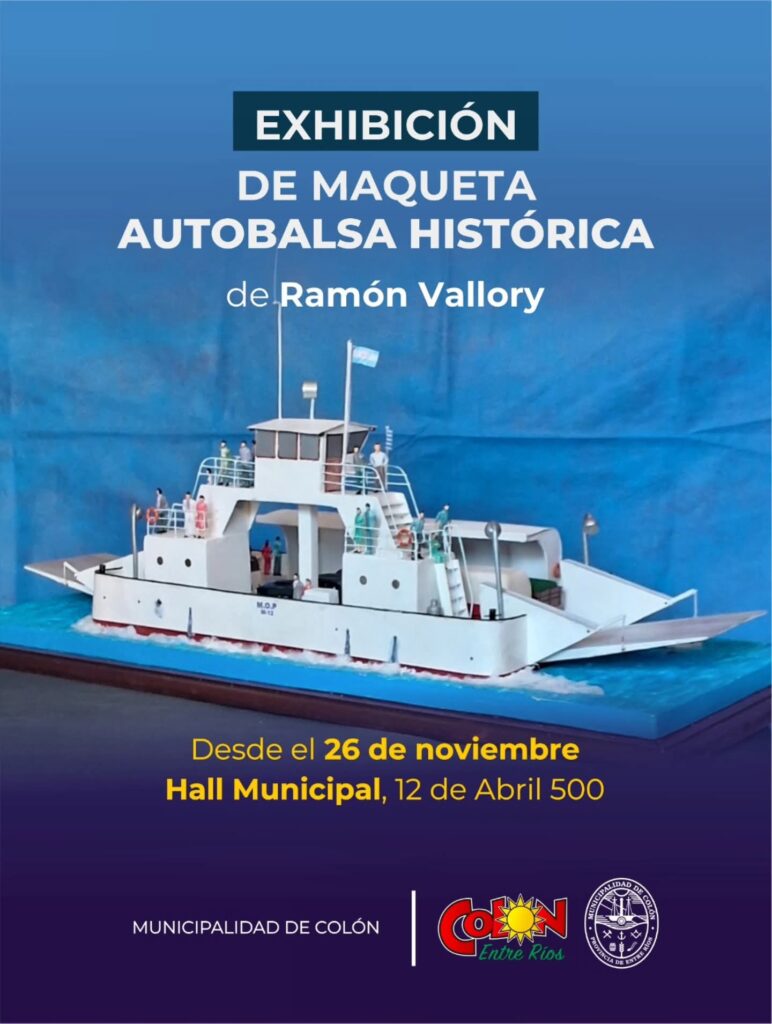Inauguración de la muestra de la maqueta histórica de la autobalsa que unió nuestra ciudad con Paysandú antes del puente. Obra de Ramón Vallory. Se presenta el 26/11 a las 9 hs en el Hall Municipal.