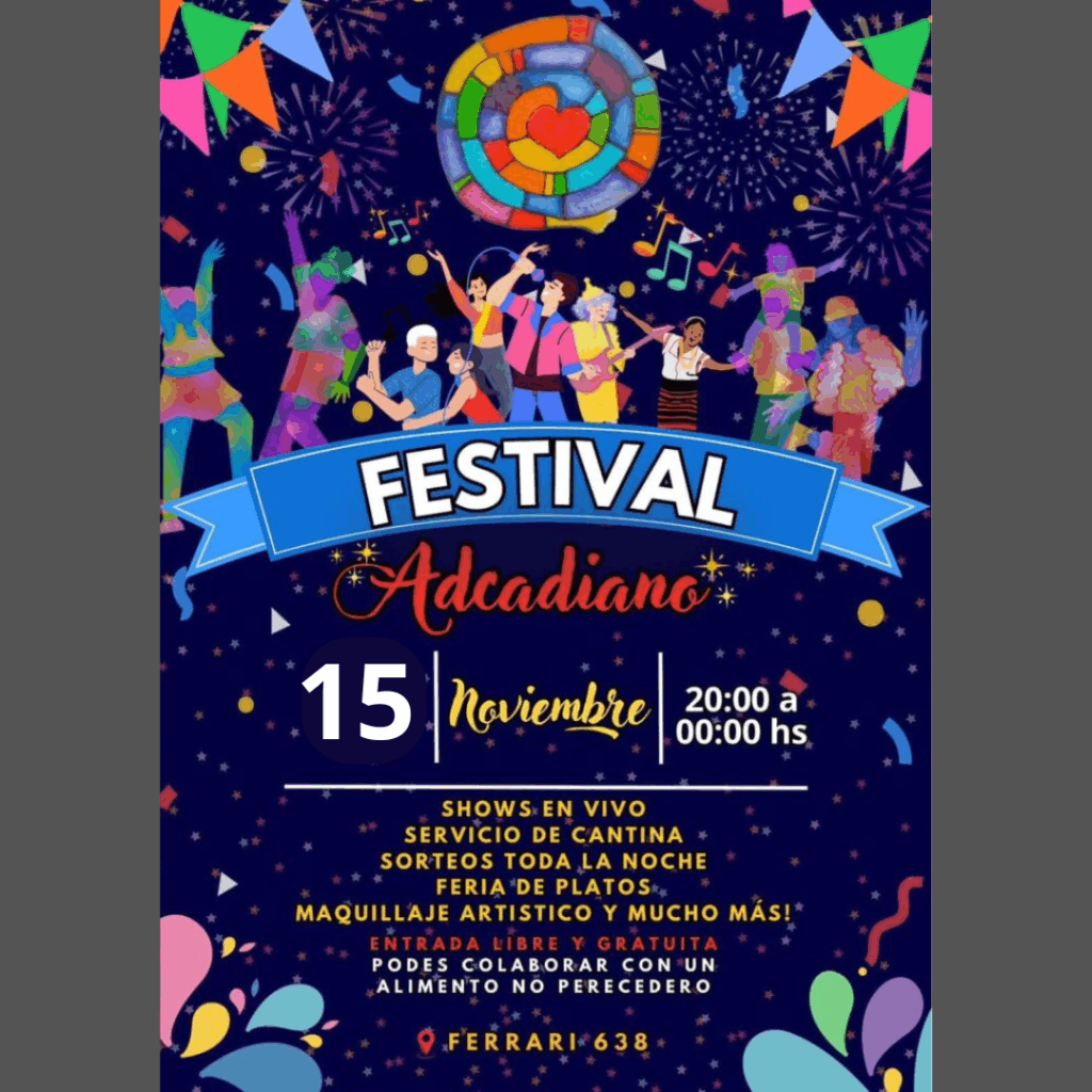 Shows en vivo Servicio de cantina Sorteos toda la noche Feria de platos Maquillaje artístico y mucho mas… Entrada libre y gratuita. Podes colaborar con un alimento no perecedero