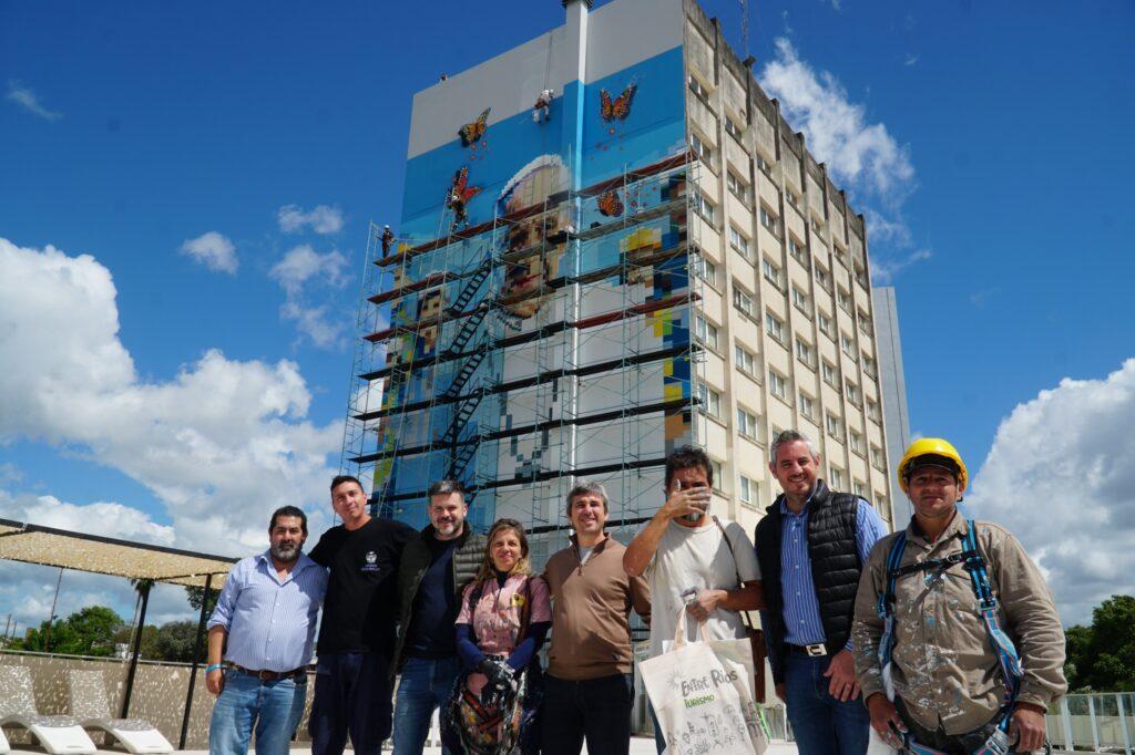 La Municipalidad de Colón acompañó la intervención artística que avanza en una de las medianeras del Hotel. La obra, donada a la comunidad por la Fundación Pinta Argentina junto a instituciones del sector, fue ejecutada en tiempo récord y tendrá curaduría de iluminación y puntos “selfie” para su disfrute turístico y ciudadano.